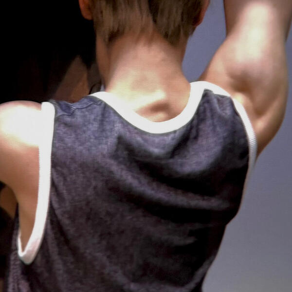 body modifications: one piercing on each ear. two tattoos — one on his ankle and one on his back